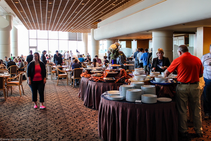 Breakfast buffet was excellent and sumptious. Through the huge windows of the breakfast area you can already see the cruise ships.