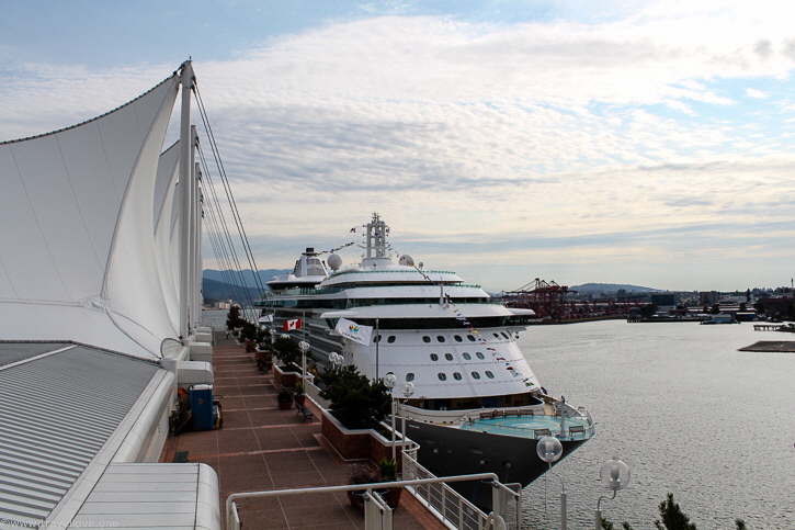 The hotel is a large part of the Canada Place building complex which is also the cruise ship terminal.