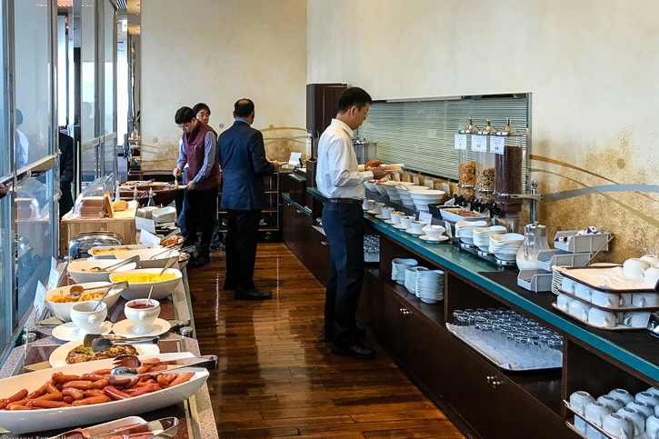 The breakfast buffet was good. For my taste it was leaning a bit too far to an Asian taste but Birgit loved to explore the items on the buffet. The breakfast room was modern and also offered great views.